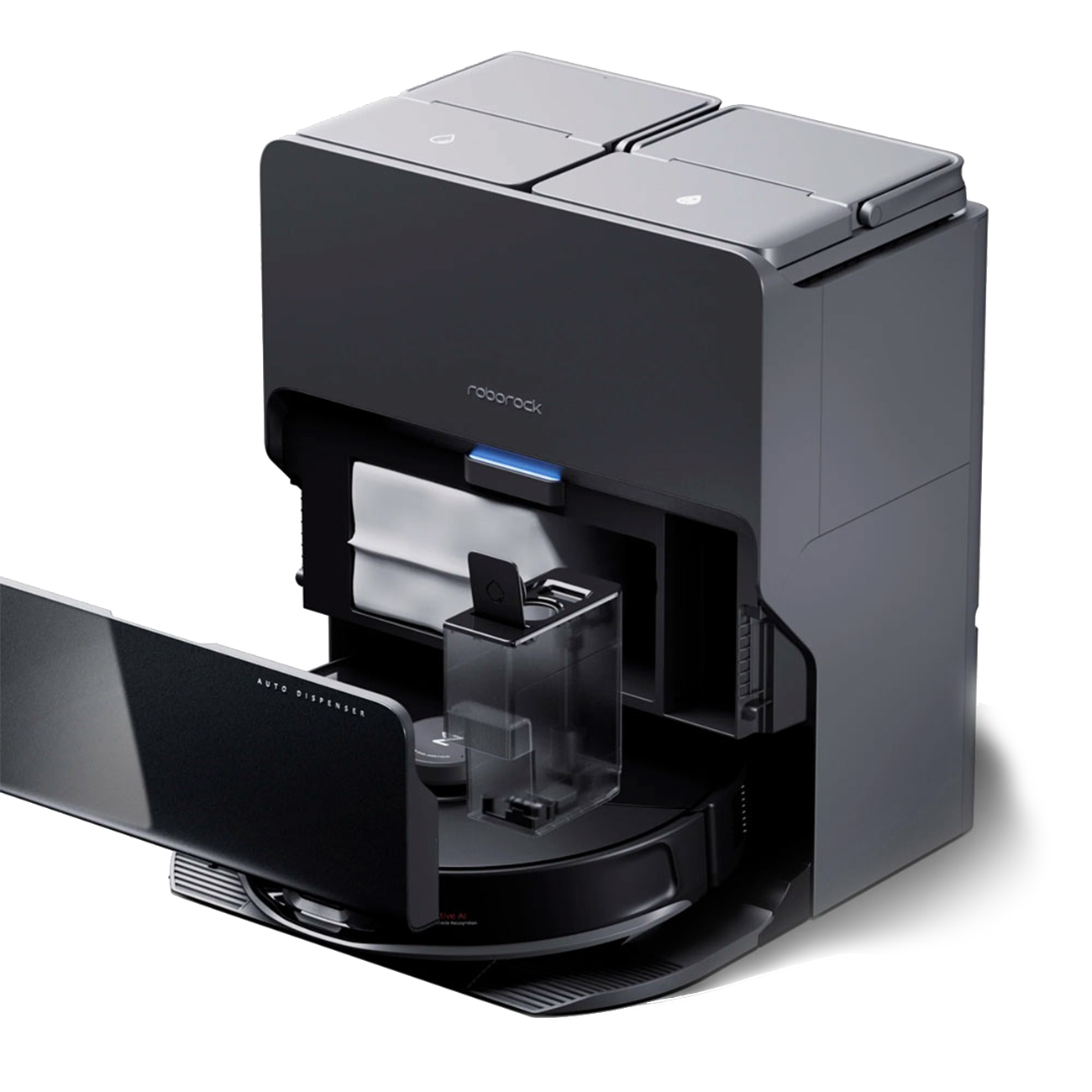 В комплекте мощная док-станция. С ее помощью вы можете не переживать за чистоту робота. Станция помоет салфетку кипятком, высушит ее, наполнит резервуар для воды, очистит пылесборник. Для большего комфорта добавьте в специальный отсек чистящее средство. Пылесос будет автоматически его дозировать во время каждой уборки.
